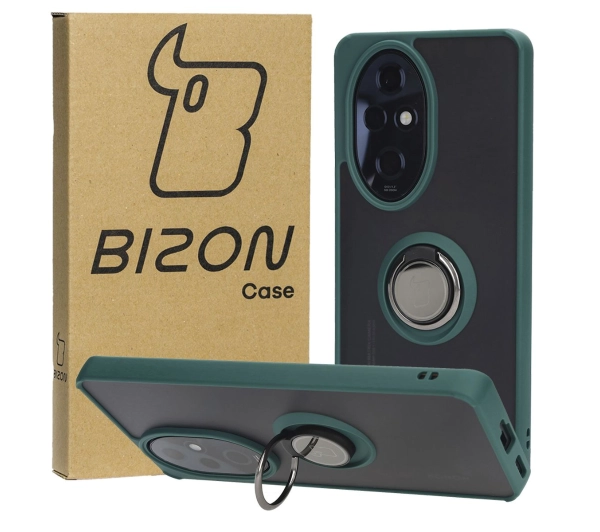 Etui Bizon z uchwytem na palec Hybrid Ring do Honor 200 Pro Przydymione z ciemnozieloną ramką
