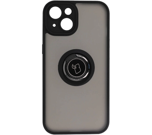 Etui Bizon z uchwytem na palec Hybrid Ring do iPhone 14 Przydymione z czarną ramką