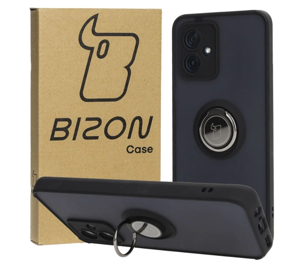 Etui Bizon z uchwytem na palec Hybrid Ring do Motorola Moto G54 5G/G54 Power Przydymione z czarną ramką