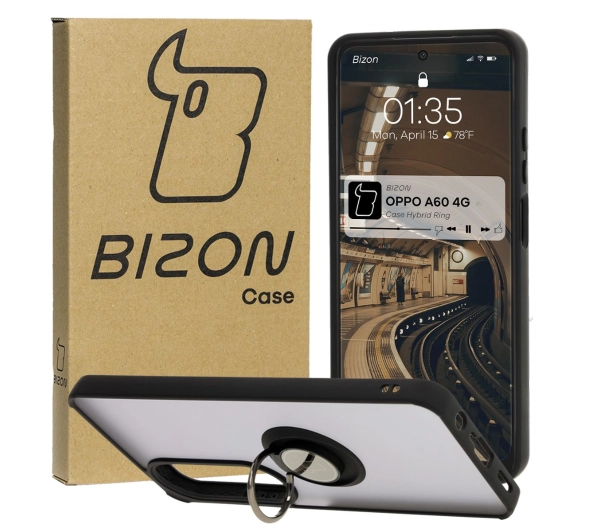 Etui Bizon z uchwytem na palec Hybrid Ring do Oppo A60 4G przydymione z Czarną ramką