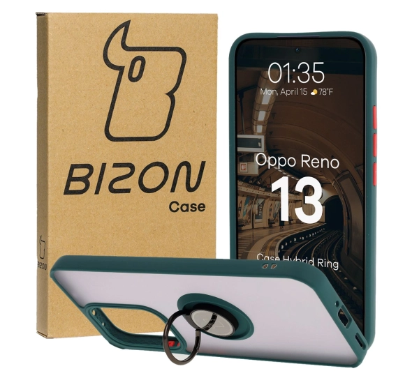 Etui Bizon z uchwytem na palec Hybrid Ring do Oppo Reno13 przydymione z Ciemnozieloną ramką
