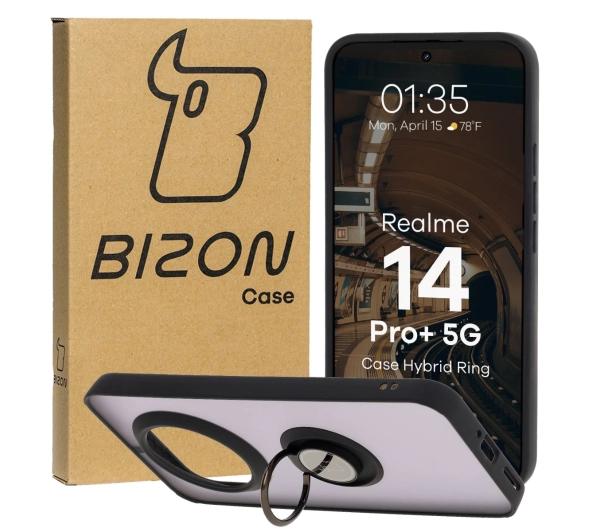 Etui Bizon z uchwytem na palec Hybrid Ring do Realme 14 Pro Plus 5G przydymione z Czarną ramką