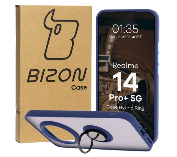 Etui Bizon z uchwytem na palec Hybrid Ring do Realme 14 Pro Plus 5G przydymione z Granatową ramką