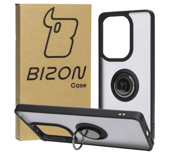 Etui Bizon z uchwytem na palec Hybrid Ring do Xiaomi Poco M6 Pro 4G / Xiaomi Redmi Note 13 Pro 4G Przydymione z czarną ramką