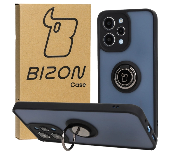 Etui Bizon z uchwytem na palec Hybrid Ring do Xiaomi Redmi 12 Przydymione z czarną ramką