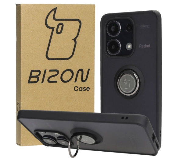Etui Bizon z uchwytem na palec Hybrid Ring do Xiaomi Redmi Note 13 4G Przydymione z czarną ramką