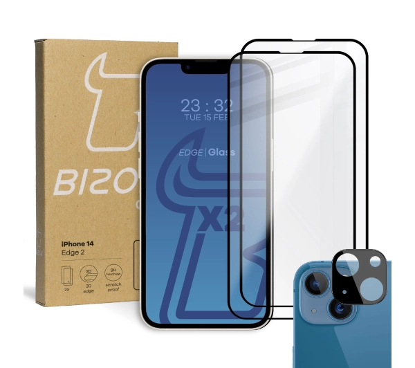 Zestaw ochronny Bizon 2x szkło + szybka na aparat do iPhone 14