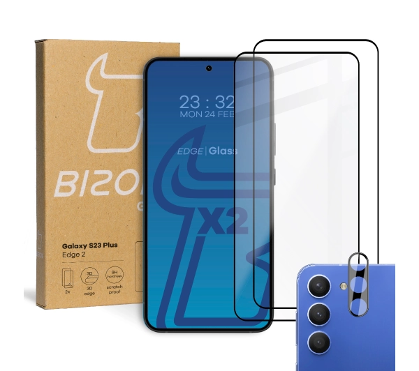 Zestaw ochronny Bizon 2x szkło + szybka na aparat Edge 2 do Galaxy S23 Plus