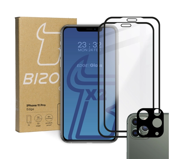 Zestaw ochronny Bizon 2x Szkło + szybka na aparat Edge Pack do iPhone 11 Pro