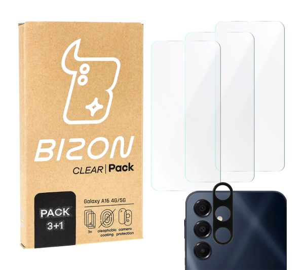 Zestaw ochronny Bizon 3x szkło hartowane + szybka na aparat Clear 2 Pack do Galaxy A16 4G/5G