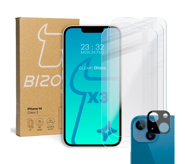 Zestaw ochronny Bizon 3x szkło + szybka na aparat do iPhone 14
