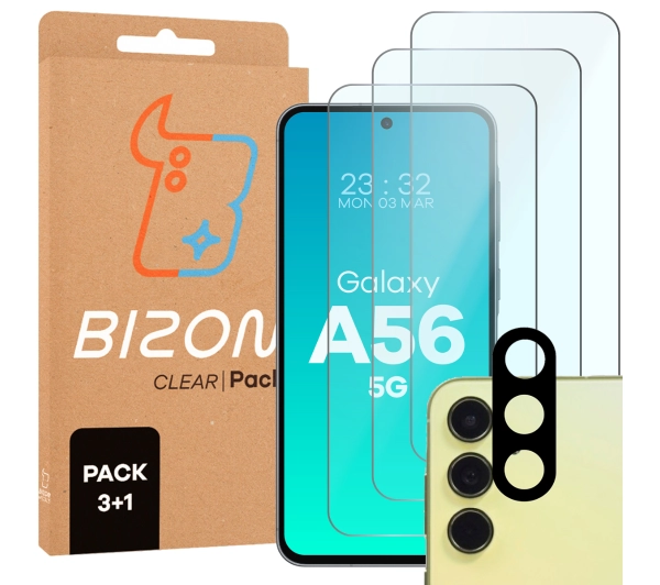 Zestaw ochronny Bizon 3x Szkło hartowane + szybka na aparat Clear 2 Pack do Galaxy A56 5G