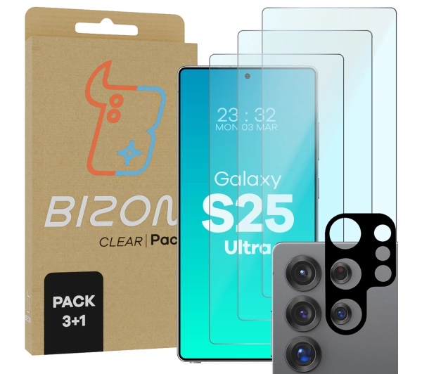 Zestaw ochronny Bizon 3x Szkło hartowane + szybka na aparat Clear 2 Pack do Galaxy S25 Ultra