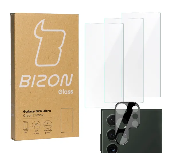 Zestaw ochronny Bizon 3x Szkło hartowane + szybka na aparat Clear 2 Pack do Samsung Galaxy S24 Ultra