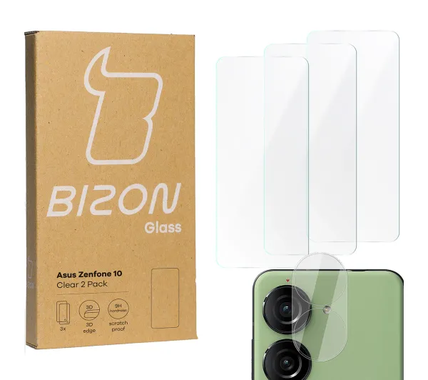 Zestaw ochronny Bizon 3x Szkło hartowane + szybka na aparat Clear 2 Pack do Asus Zenfone 10