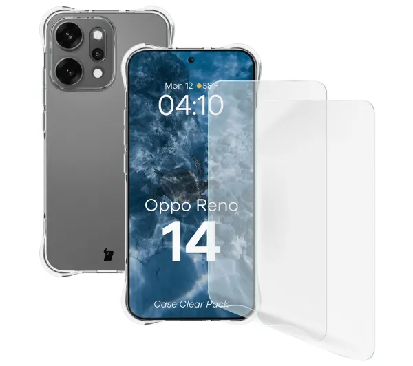 Zestaw ochronny Bizon elastyczne etui Salpa + 2x szkło hartowane Clear Pack do Oppo Reno 14