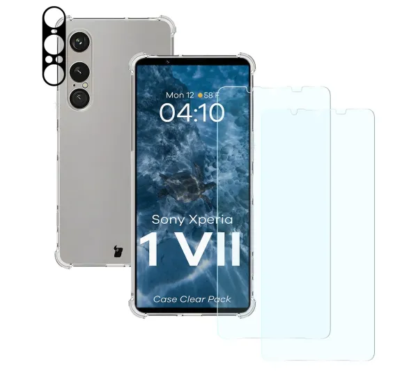 Zestaw ochronny Bizon elastyczne etui Salpa + 2x szkło hartowane Clear Pack do Sony Xperia 1 VII