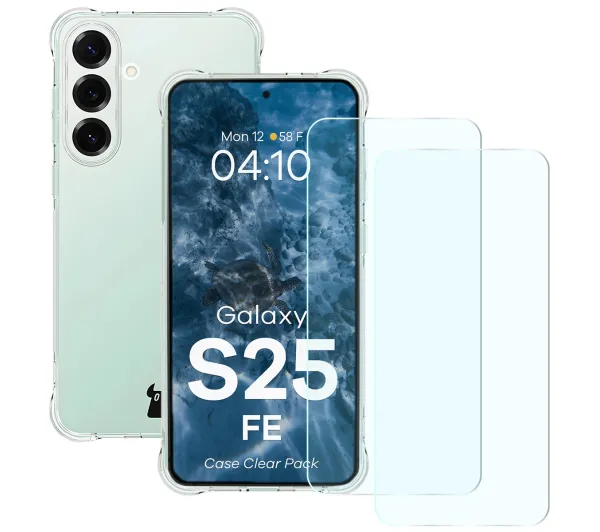 Zestaw ochronny Bizon elastyczne etui Salpa + 2x szkło hartowane Clear Pack do Samsung Galaxy S25 FE