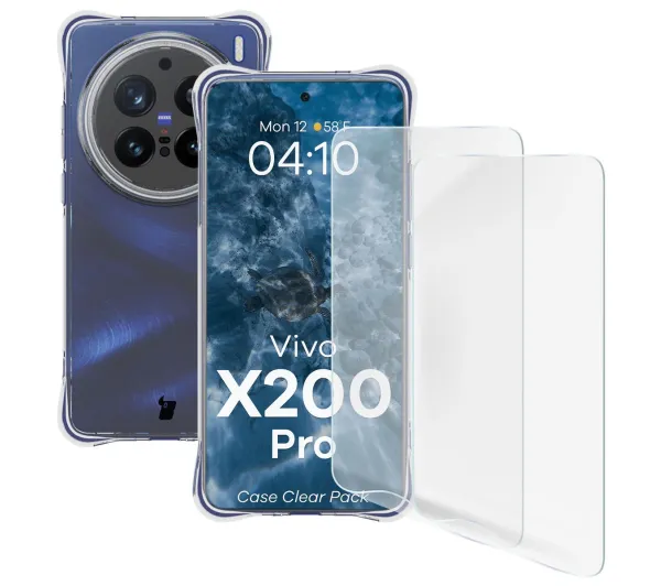 Zestaw ochronny Bizon elastyczne etui Salpa + 2x szkło hartowane Clear Pack do Vivo X200 Pro