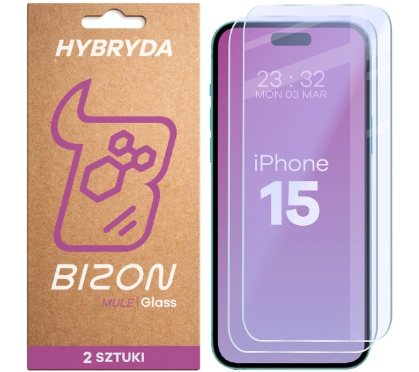 Szkło hybrydowe Bizon Glass Mule Duo do iPhone 15 2 sztuki