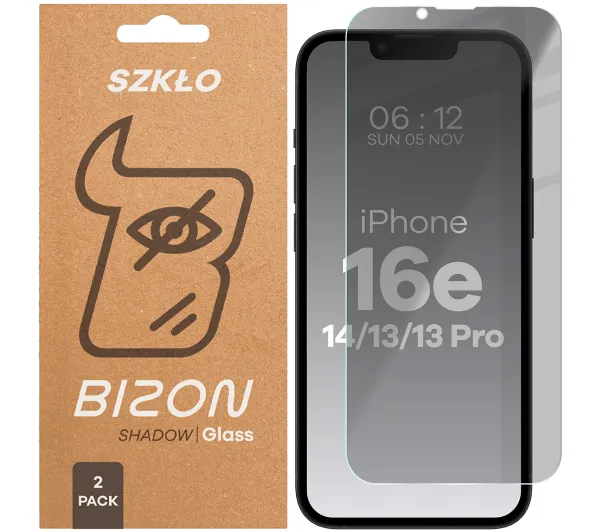 Szkło hartowane Bizon prywatyzujące Clear Shadow Duo do iPhone 16e / 14 / 13 Pro / 13