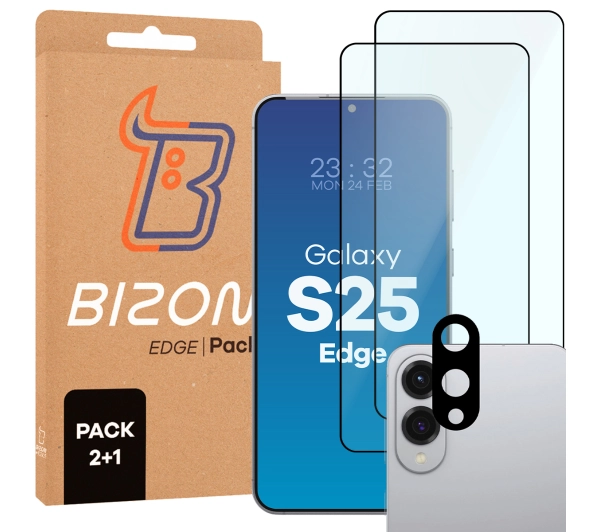 Zestaw ochronny Bizon 2x szkło + szybka na aparat Edge 2 Pack do Samsung Galaxy S25 Edge