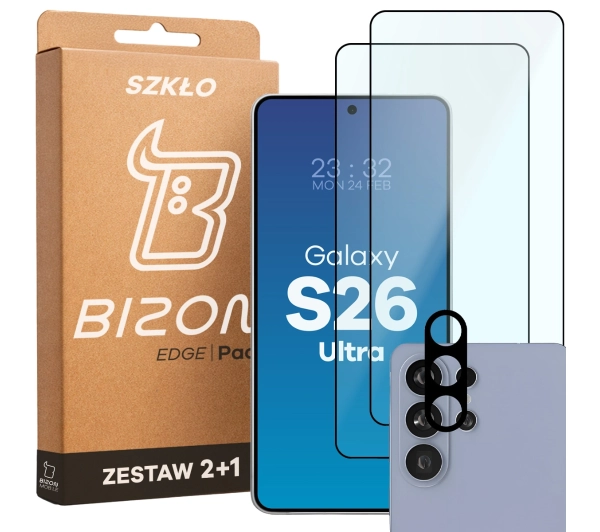 Zestaw ochronny Bizon Szkło + szybka na aparat Glass Edge Pack do Galaxy S26 Ultra 2 sztuki