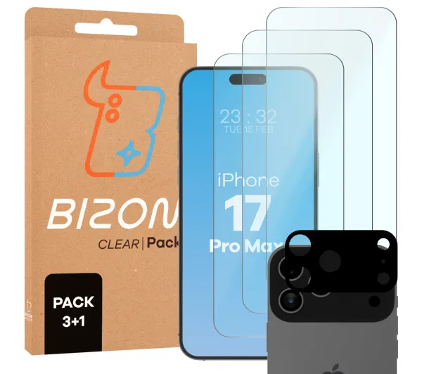 Zestaw ochronny Bizon 3x Szkło hartowane + szybka na aparat iPhone 17 Pro Max