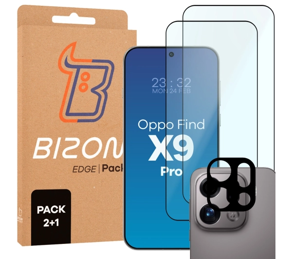 Folia hydrożelowa Bizon Szkło + szybka na aparat Glass Edge Pack do Oppo Find X9 Pro 2 sztuki
