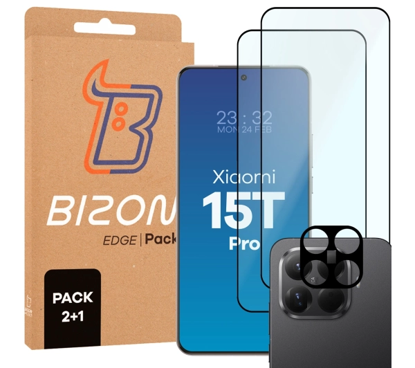 Folia hydrożelowa Bizon Szkło + szybka na aparat Glass Edge Pack do Xiaomi 15T Pro 2 sztuki