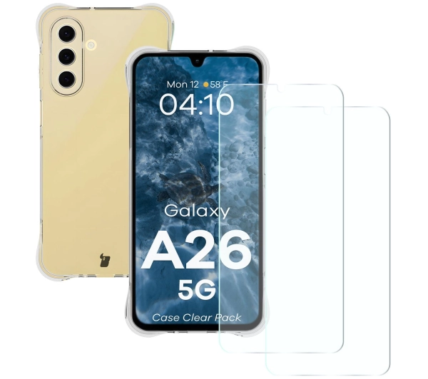 Zestaw ochronny Bizon elastyczne etui Salpa + 2x szkło hartowane Clear Pack do Galaxy A26 5G