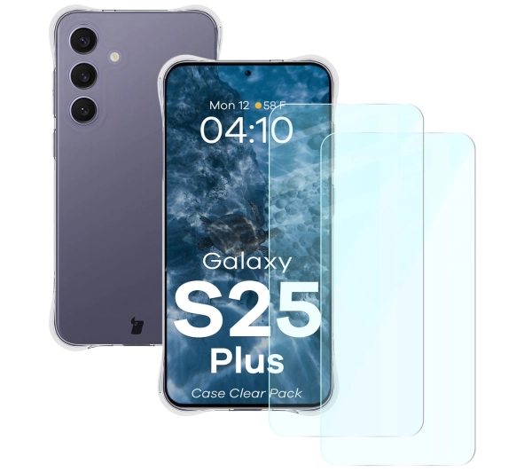 Zestaw ochronny Bizon elastyczne etui Salpa + 2x szkło hartowane Clear Pack do Galaxy S25 Plus