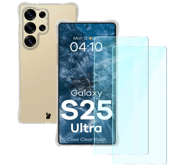 Zestaw ochronny Bizon elastyczne etui Salpa + 2x szkło hartowane Clear Pack do Galaxy S25 Ultra