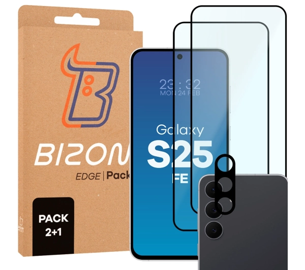 Zestaw ochronny Bizon 2x Szkło + szybka na aparat Edge Pack do Samsung Galaxy S25 FE