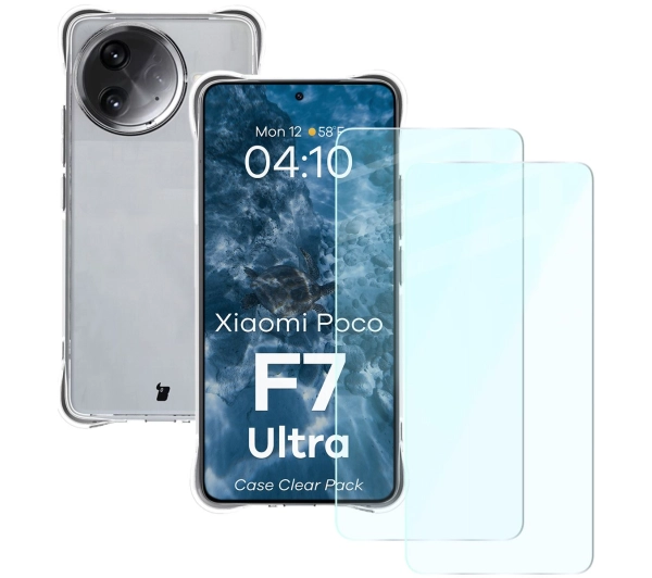 Zestaw ochronny Bizon elastyczne etui Salpa + 2x szkło hartowane Clear Pack do Xiaomi Poco F7 Ultra