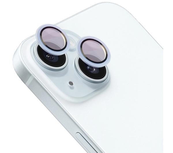 Szkło hartowane Bizon na aparat z aplikatorem Snap Lens do iPhone 15/15 Plus jasnoniebieska ramka