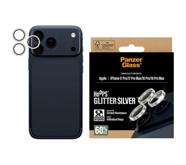 Szkło ochronne PanzerGlass Hoops Glitter do iPhone 17 Pro / 17 Pro Max / 16 Pro / 16 Pro Max Srebrny