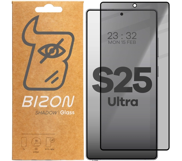Szkło hartowane Bizon prywatyzujące pełne Edge Shadow do Galaxy S25 Ultra Przyciemniane