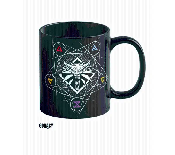 Opis: Ten kubek to nie tylko przedmiot codziennego użytku, to wręcz magiczny artefakt, który reaguje na temperaturę Twojego napoju. Obserwuj, jak tajemnicze znaki wiedźmińskie stopniowo ukazują się na jego powierzchni. Pojemność 480ml