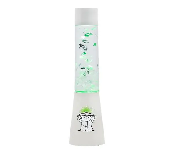 Opis: Oficjalnie licencjonowane, wypełniona płynnymi kształtami ze srebrnej folii i brokatem, zasilanie: USB (kabel nie jest dołączony) lub 3 baterie AAA (brak w zestawie) 33cm wysokości