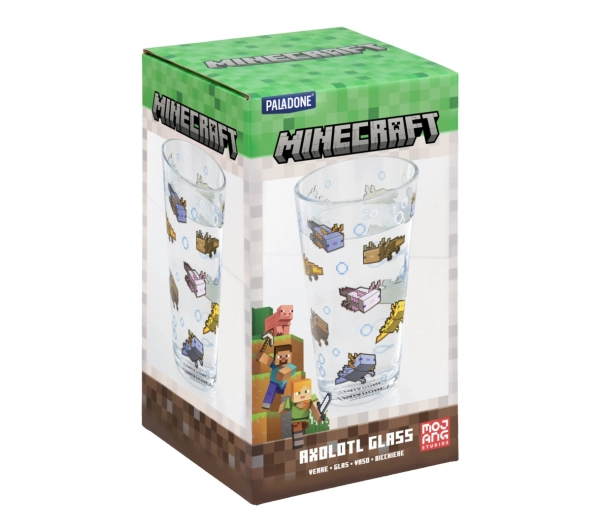 Opis: pojemnośc 400ml, ozdobny nadruk otaczający całą szklankę, wzór Axolotl inspirowany Minecraftem, oficjalnie licencjonowany produkt Minecraft