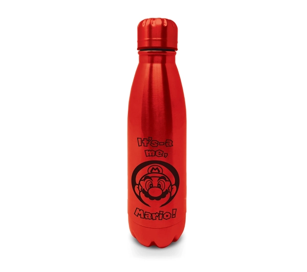 Opis: stalowy, czarny bidon z grafiką Mario, .pojemność 540 ml