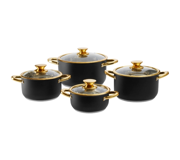 Zawartość: 4 garnki, 4 pokrywki szklane