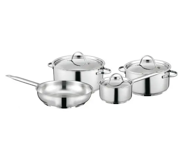 Z rondelkiem 16 cm z pokrywą, garnkiem 20 cm z pokrywą, garnkiem 24 cm z pokrywą i patelnią 24 cm, ten 7-częściowy zestaw naczyń oferuje wszystkie niezbędne naczynia potrzebne do przyrządzenia pysznego posiłku. Wszystkie elementy są wykonane z wysokiej jakości stali nierdzewnej 18/10, która zapewnia dodatkową trwałość i mają wielowarstwową podstawę, zapewniającą szybkie i równomierne rozprowadzanie ciepła na każdym rodzaju płyty kuchennej, w tym indukcyjnej. Co więcej, garnki i patelnia mają specjalną krawędź umożliwiającą nalewanie bez kapania i są wyposażone w szklane pokrywki ze zintegrowanym odpowietrznikiem, dzięki czemu można łatwo mieć oko na jedzenie podczas gotowania bez konieczności podnoszenia pokrywki.