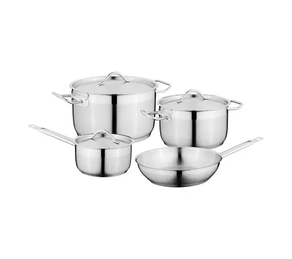 Ten 7-częściowy zestaw garnków zapewnia wszystkie podstawowe naczynia potrzebne do codziennych przygód kulinarnych. Garnki i patelnie są wykonane z wysokiej jakości stali nierdzewnej 18/10, aby wytrzymać próbę czasu i są wyposażone w podstawę, która zapewnia szybkie i równomierne przenoszenie ciepła od dna do krawędzi, co zapewnia energooszczędne gotowanie. Przygotuj posiłki na dowolnej płycie kuchennej, w tym na płycie indukcyjnej, i po prostu włóż garnki i patelnie do zmywarki, aby ułatwić sobie sprzątanie.