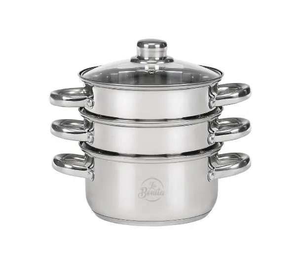 <p> </p> <p> </p><h3>Garnek do gotowania na parze Solo</h3><p> </p>Garnek idealnie sprawdza się dla osób dbających o zdrowe odżywianie. Posiłki przygotowywane na parze zachowują swoje walory zdrowotne i nie tracą właściwości. Jedzenie przygotowuje się szybciej niż te gotowane w wodzie, a zarazem jest miękkie i smaczne. Nie musimy martwić się o przypalenie.Zestaw składa się z 4 elementów: garnek, szklana pokrywka oraz dwa wkłady parowe.Cechą charakterystyczną zestawu jest jakość wykonania. Stal nierdzewna gwarantuje wytrzymałość i solidność. Całość została zachowana w klasycznej stylistyce, o prostych kształtach, które wpisują się w styl każdej kuchni i mieszkania. <h2>Zalety:</h2>• wykonanie z wysokiej jakości stali szlachetnej, odpornej na rdzę• wydajność garnka dzięki możliwości gotowania na dwóch wkładach parowych• pokrywka ze szkła hartowanego posiada otwór odprowadzający nadmiar pary• denko garnka zbudowane jest z 5 warstw, które zapewniają szybkie i równomierne rozprowadzenie ciepła• duże i ergonomiczne uchwyty ułatwiają gotowanie i podnoszą komfort pracy • garnek można używać na wszystkich typach kuchenek, w tym indukcyjnych