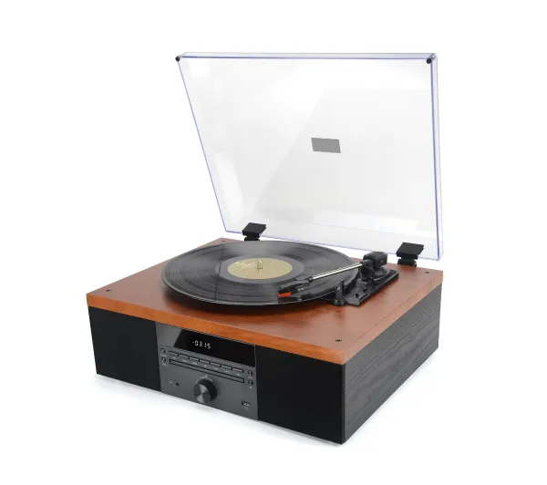 Ciesz się ulubionymi albumami cyfrowymi oraz analogowymi, korzystając z jednego, eleganckiego urządzenia. Dzięki wbudowanemu odtwarzaczowi płyt kompaktowych nie musisz inwestować w dodatkowy sprzęt, co pozwala ci zaoszczędzić pieniądze i przestrzeń w domu. To kompleksowe rozwiązanie gwarantuje maksymalny komfort każdemu melomanowi.