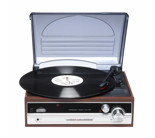 Wbudowany przedwzmacniacz umożliwia podłączenie gramofonu do zewnętrznego wzmacniacza audio, za pomocą uniwersalnego wejścia AUX (cinch).