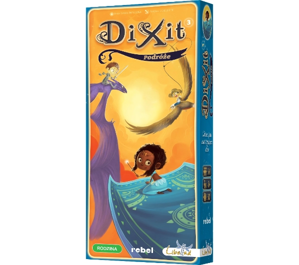 Opis: Uwaga! To nie jest samodzielna gra! Do rozgrywki wymagana jest podstawowa wersja gry: Dixit lub Dixit Odyseja Dixit 3: Podróże to zestaw 84 unikalnych kart, przestawiających niesamowite grafiki pełne subtelnych szczegółów i zapierających dech w piersiach widoków. Karty te można łączyć ze wszystkimi edycjami i dodatkami do gry Dixit.