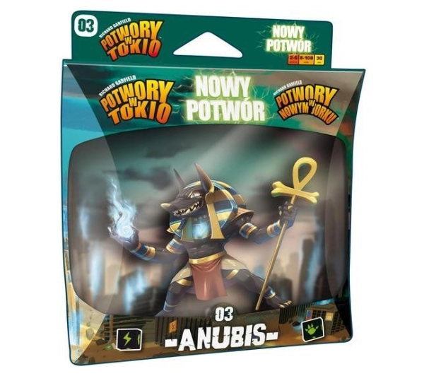 Opis: Anubis to trzeci minidodatek do Potworów w Tokio i Potworów w Nowym Jorku, kultowych gier planszowych Richarda Garfielda, autora takich kolekcjonerskich tytułów jak Android: Netrunner czy Magic: The Gathering. Rozszerzenie wprowadza do gry nowego potwora — egipskiego boga śmierci, Anubisa.